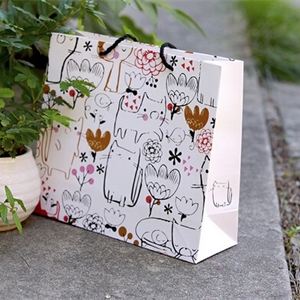 卡通白色大橫精美化妝品白卡紙袋定制